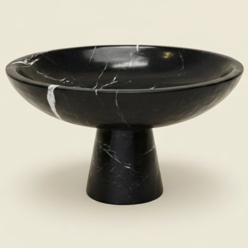 The Black Marble Pedestal Bowl from Meridian Concept brings together the elegance of natural stone and the character of refined craftsmanship. Handcrafted from 100% natural Toros black marble, this elevated bowl features a polished, glossy surface that enhances the stone’s depth and distinctive veining. Each piece carries a unique natural pattern, making it a one-of-a-kind object.