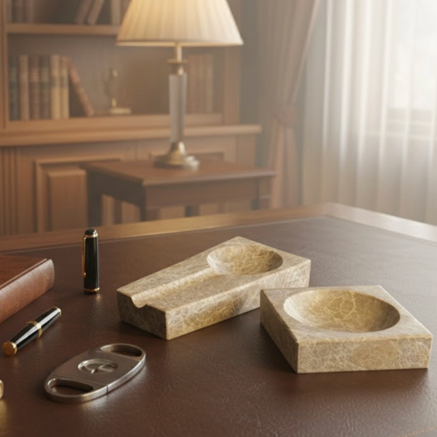 Emperador Marble Cigar Ashtray & Snack Bowl Set – 2 Piece (Handcrafted)
