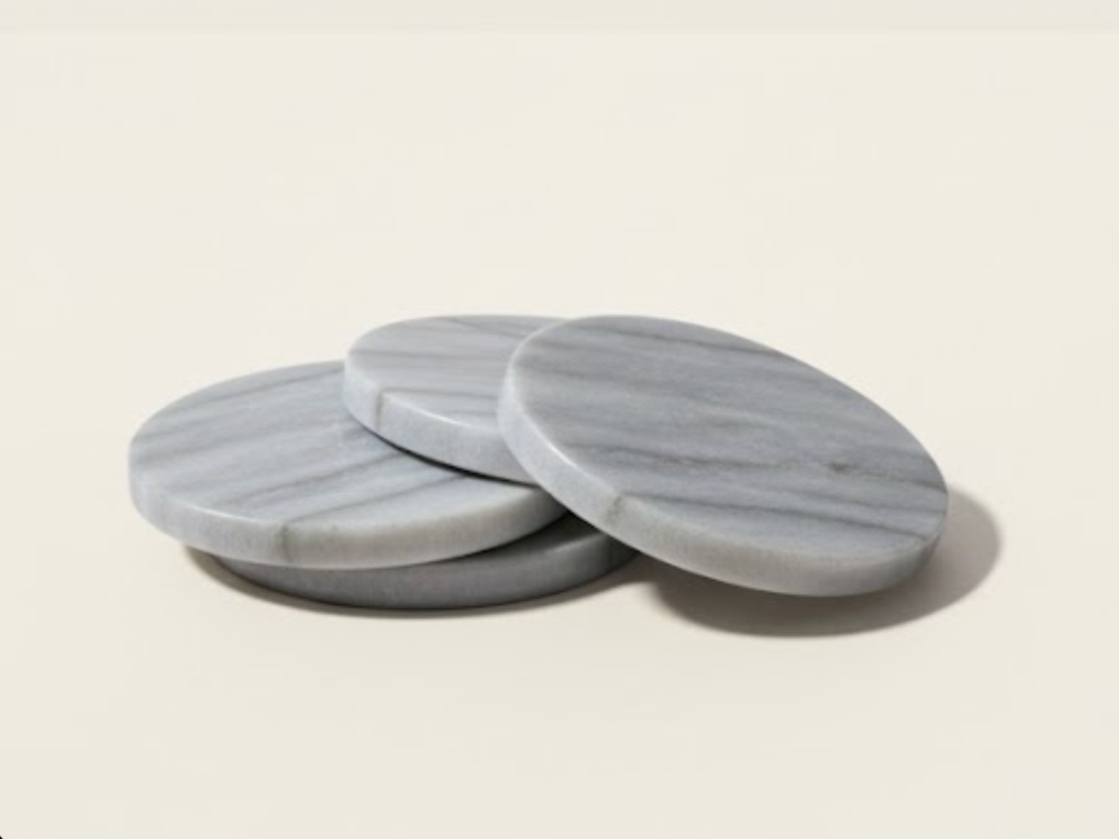 Bring refined elegance to your table with this Grey Natural Marble Coaster Set (4 Pieces), handcrafted from 100% genuine natural marble.