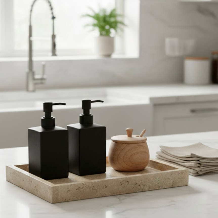 Its balanced proportions and solid stone weight provide stability, making it suitable for both functional use and decorative styling. Whether placed on a dining table, coffee table, console, or vanity, this tray adds a subtle, natural sophistication to any interior.