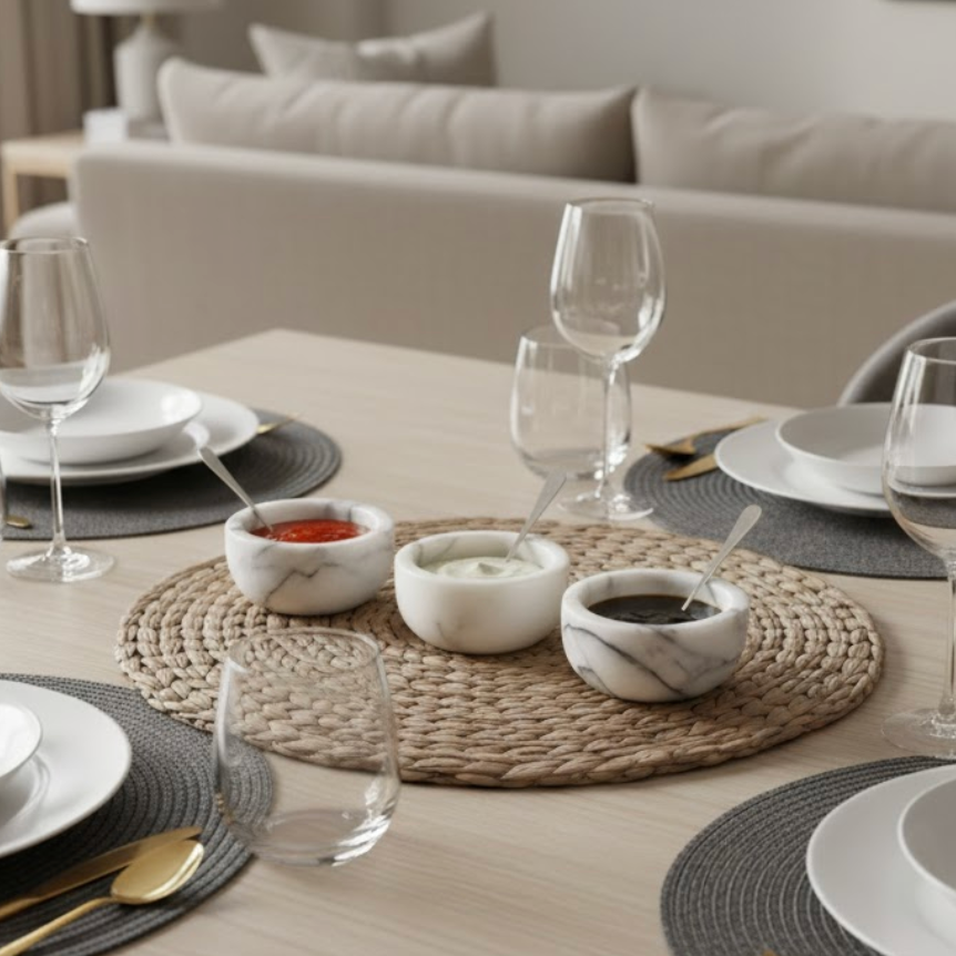 This product is made from natural marble. Variations in veining, color tone, and texture may occur between pieces. These natural characteristics are part of the stone’s authenticity and make each set one of a kind.