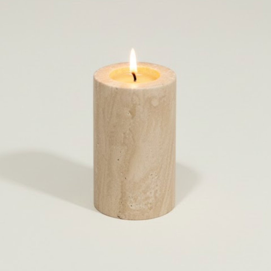 Handcrafted from 100% natural travertine stone, the set consists of five candle holders in varying heights and a generously sized stone tray that unifies the arrangement. The natural porous texture and soft earth-toned variations of travertine create a calming and organic presence, making the set suitable for both modern and classic interiors.