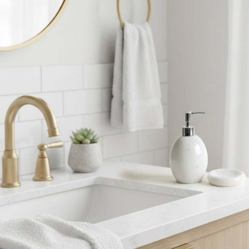 Enhances a clean, bright, and elegant bathroom atmosphere
