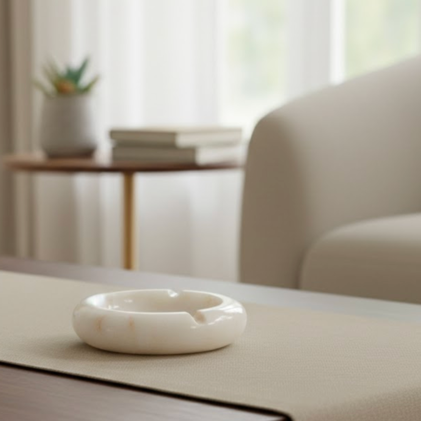 Its minimalist design appeals to modern and younger interiors, while the solid stone structure ensures durability and long-term performance. Whether placed on a coffee table, balcony setup, desk, or lounge area, it functions as both a functional ashtray and a decorative stone object.