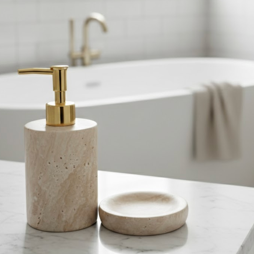 Travertine Natural Stone Bathroom Set – 2-Piece Handcrafted
